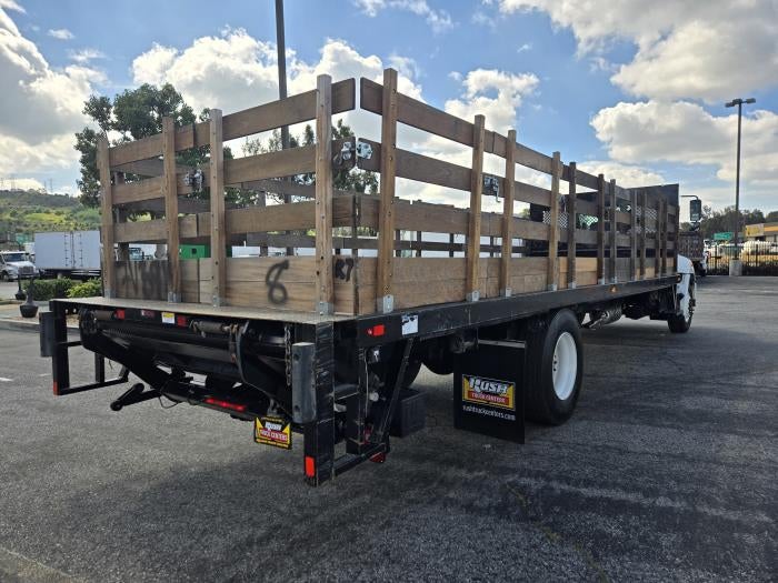 2023 Hino L6, Cummins B6.7 240HP engine Allison 6 Speed Transmission, air brakes, spring suspension, good tires, am/fm radio with Bluetooth®, 26' stake bed with sliding wenches and steel tuck away 2,500 lbs. capacity tuck away liftgate, truck has been inspected, serviced, detailed, OBD tested and DOT certified, California compliant truck ready for work! Call or email for more information if needed! Stock # 1521108 Price does not include state and local taxes; tags; registration or title fees; dealer-imposed fees, including document preparation, processing or servicing fees, or any optional equipment or upfitting work selected by buyer. Valid while supplies last. Images shown may not reflect actual vehicle.